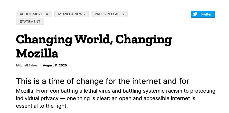 实际上在今年一月的时候,Mozilla 已经有过一轮涉及 70 人的裁员。不过那一次的原因是由于 Firefox 的营利产品没有产生足够的利润,和疫情并没有太大的关联。