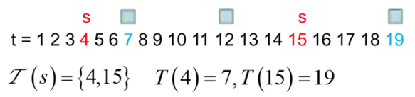 如图4.8所示,t是状态s访问的时刻,T(t)是访问状态s相对应的试验的终止状态所对应的时刻。T(s)是状态s发生的所有时刻集合。在该例中,