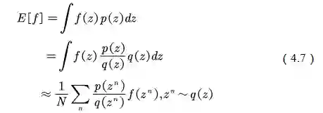 然而,当目标分布非常复杂或未知时,我们无法得到目标分布的采样点,无法得到采样点就无法计算(4.15)式,也就无法计算平均值。这时,我们需要利用统计学中的各种采样技术。