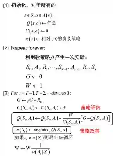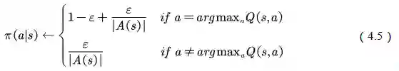 异策略可以保证充分的探索性。例如用来评估和改善的策略是贪婪策略,用于产生数据的探索性策略