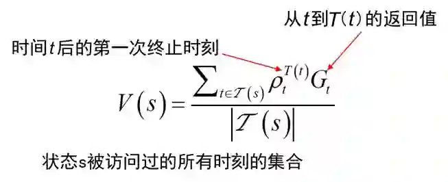 当要评估智能体的当前策略时,我们可以利用策略产生很多次试验,每次试验都是从任意的初始状态开始直到终止,比如一次试验(an episode)为计算一次试验中状态处的折扣回报返回值为
