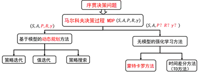 强化学习算法的精髓之一是解决无模型的马尔科夫决策问题。如图4.1所示,无模型的强化学习算法主要包括蒙特卡罗方法和时间差分方法。本章我们阐述蒙特卡罗方法。