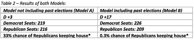 第二个模型包含之前议会的选举结果,尽管这个模型没有显著改善验证集上的损失,但是该模型确实给民主党带来了更多胜利的可能。由于测试表明在训练集上的差异没有明显的差异,这两者的结果如下:原始模型标记为“模型A”,而更新模型则包括前一次选举的结果,标记为“模型B”。