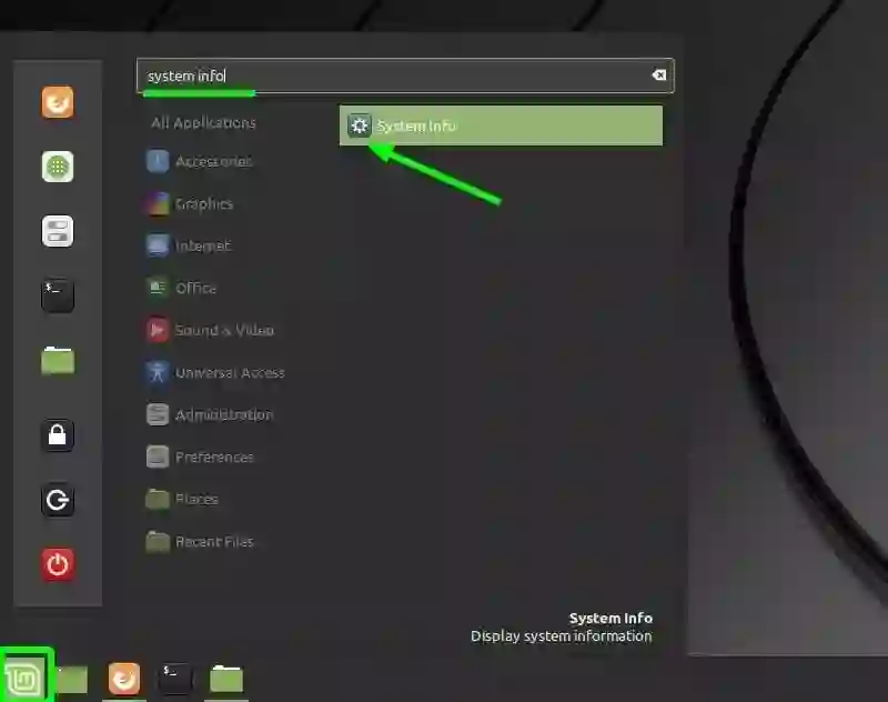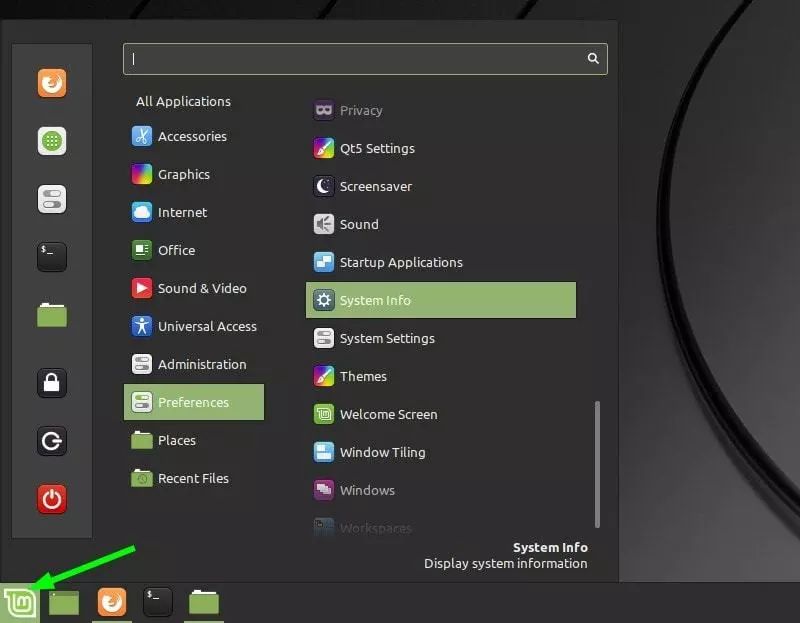 打开“菜单” (左下角),然后转到“偏好设置 > 系统信息”: