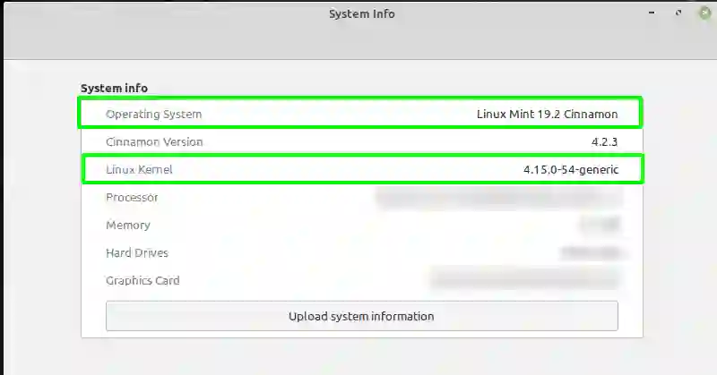 在这里,你可以看到你的操作系统(包括版本号),内核和桌面环境的版本号: