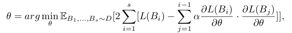 where L is the loss function, which can be selected to fit the problem. If we would like to maximize transfer and minimize interference, we can imagine it would be useful to add an auxiliary loss to the objective to bias the learning process in that direction.