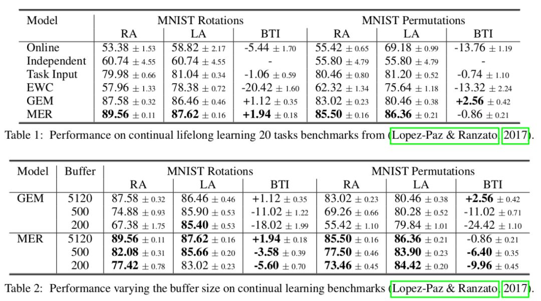 • GEM: Gradient Episodic Memory (GEM) is an approach for making efficient use of episodic storage by following gradients on incoming examples to the maximum extent while altering them so that they do not interfere with past memories.