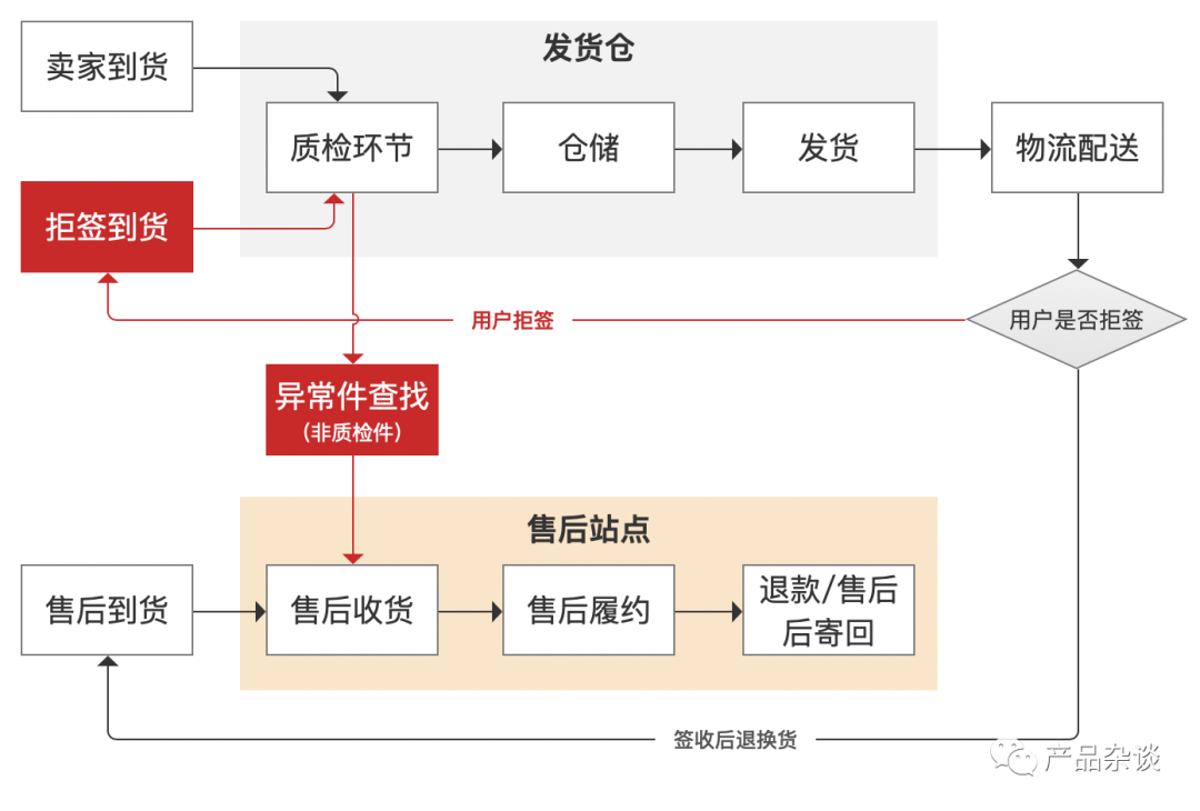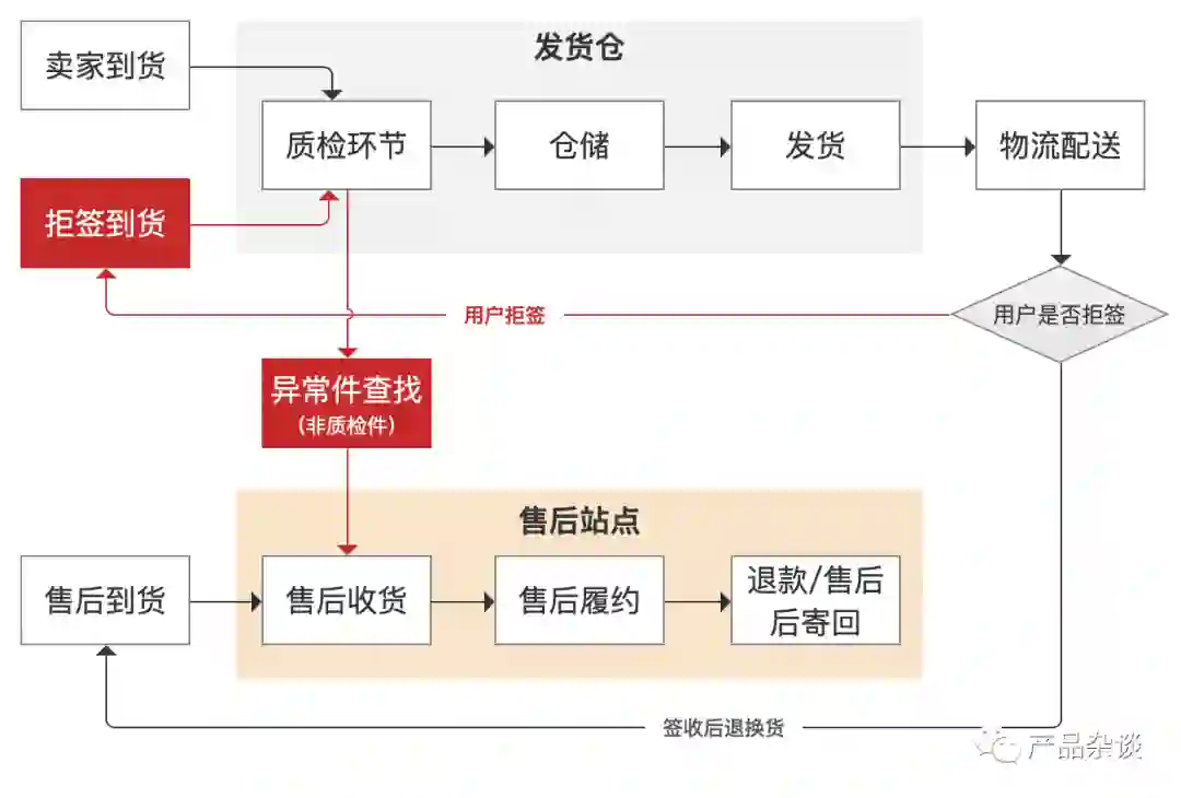 背后发生这个“异常”的原因是:物流拒签会原路打回发货地,而发货地和售后站点如果分属于2个物理站点和2个团队,那就会多很多中间的转移环节。