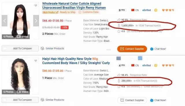 网站上平均每2秒钟就能卖出一顶假发,半年内销售量动辄几十万几百万美刀的商家不在少数。