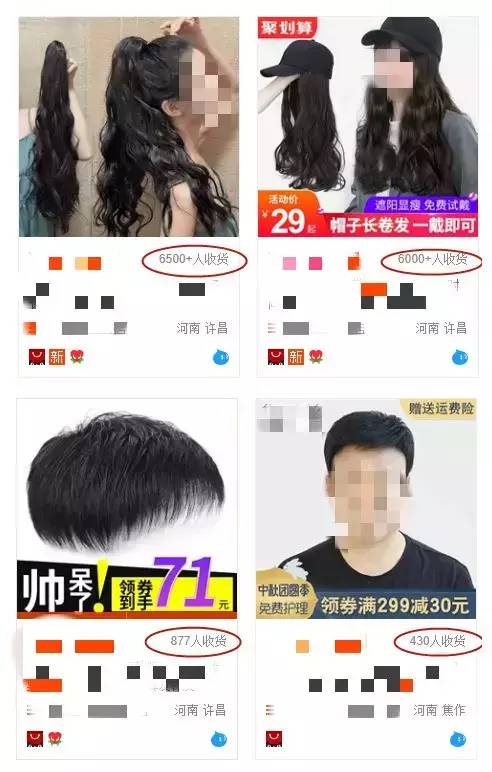 妹子们喜欢的假发,发货量动辄5000起步;腼腆的男士们虽然假发买得少一些,但这数字也足够令人咋舌。