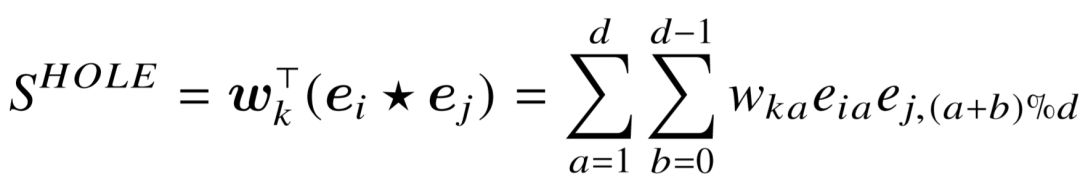 Nickel 等人提出了 HOLE 模型[82],该模型利用循环相关运算( Circular Correlation )巧妙地代替了 RESCAL 中的张量积操作: