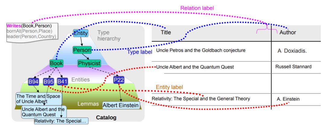 图2–1 Limaye等人提出的表格链接任务。