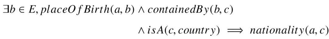 其次,对于关系层面的语义理解,一个传统任务为关系分类任务:给定包含两个实体的句子,将它们之间的关系归类至预定义的关系类别中。然而关系分类任务较难扩展到开放领域,一方面,关系类别增多的同时,任务数据集的标注代价显著提升,另一方面,不同于实体匹配,知识库谓词和自然语言关系可能存在一定偏差,难以直接分类。在这样的前提下,关系理解的实质在于,如何利用知识库的已有谓词信息,学习目标关系语义。这引出了知识库补全( Knowledge Base Completion)任务:由于知识库中的事实可能存在缺失,对于其中的目标谓词,能否推理出它和其它谓词之间的联系,从而自动添加新的事实。例如知识库中,某人的国籍缺失,那么可以根据其出生地所在的国家进行推测。由于知识库中的事实三元组和自然语言的关系三元组具有类似形式,因此目标谓词可以从知识库扩展到自然语言中。