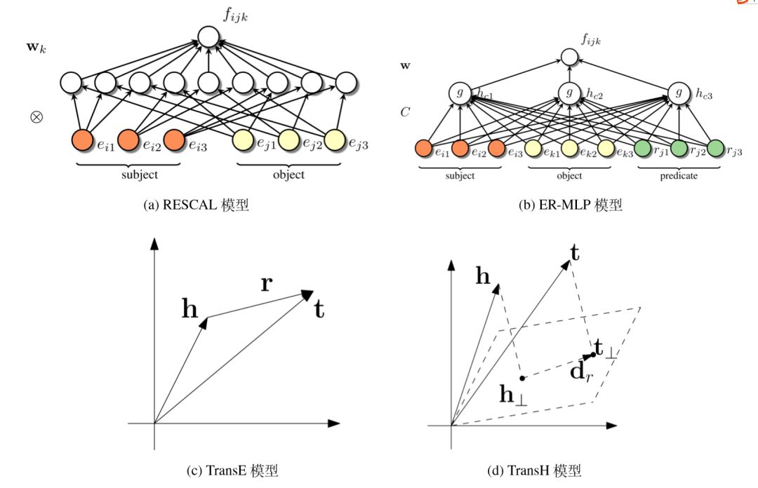 ) 的组合特征表示,并大幅度减少参数数量。E-MLP 模型中,不同的谓词依然对应不同的参数,而 ER-MLP 模型将谓词也映射为向量表示,与两实体共同作为第一层的输入,因此模型的参数 C 与