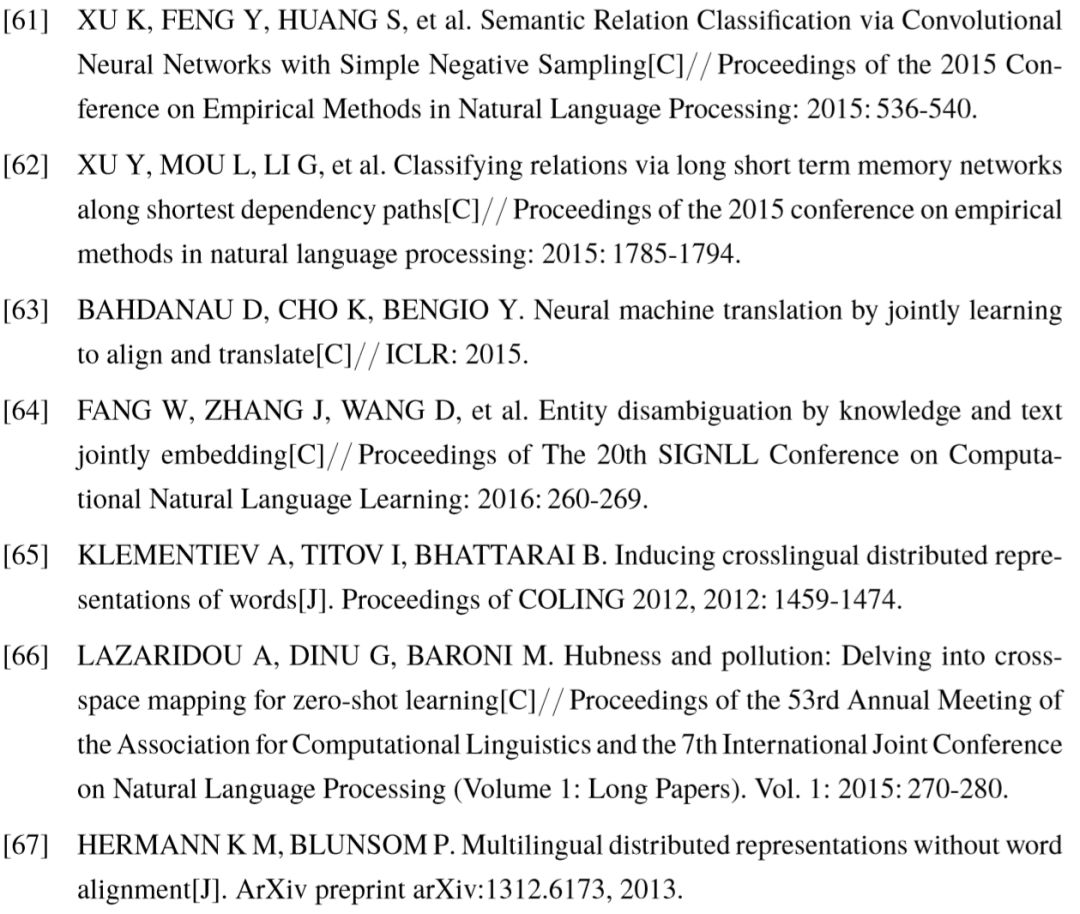 对于 的定义,相关文献进行了不同的尝试。Mikolov 等人[60] 发现,在不同语言中,多个单词的向量表达之间,几何关系较为相似,例如英语和西班牙语中,表示数字的单词之间的相对位置几乎一致,表示动物的单词也有类似特性。基于以上观察,该工作提出的模型使用了线性变换的方案,训练转移矩阵
