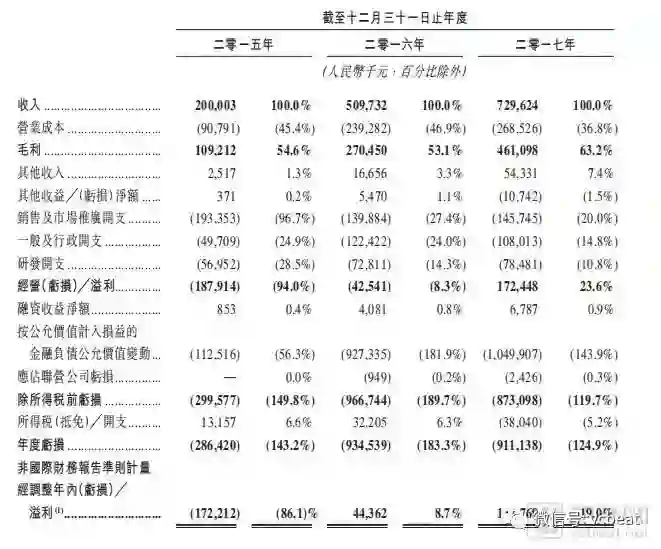 招股书显示,宝宝树2015年-2017年营收为2亿元、5.09亿元、7.29亿元。毛利率分别为54.6%、53.1%、63.2%。2015年-2017年年度亏损2.86亿元、9.34亿元、9.11亿元。2015年经调整年内亏损1.72亿元,2016年为0.44亿元,2017年为1.38亿元。
