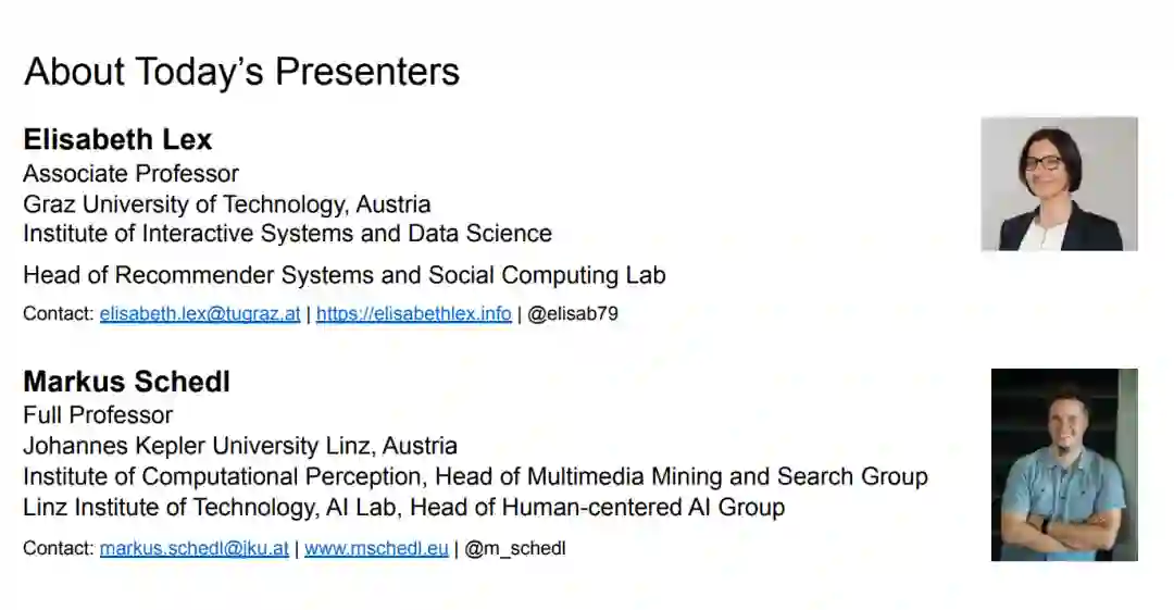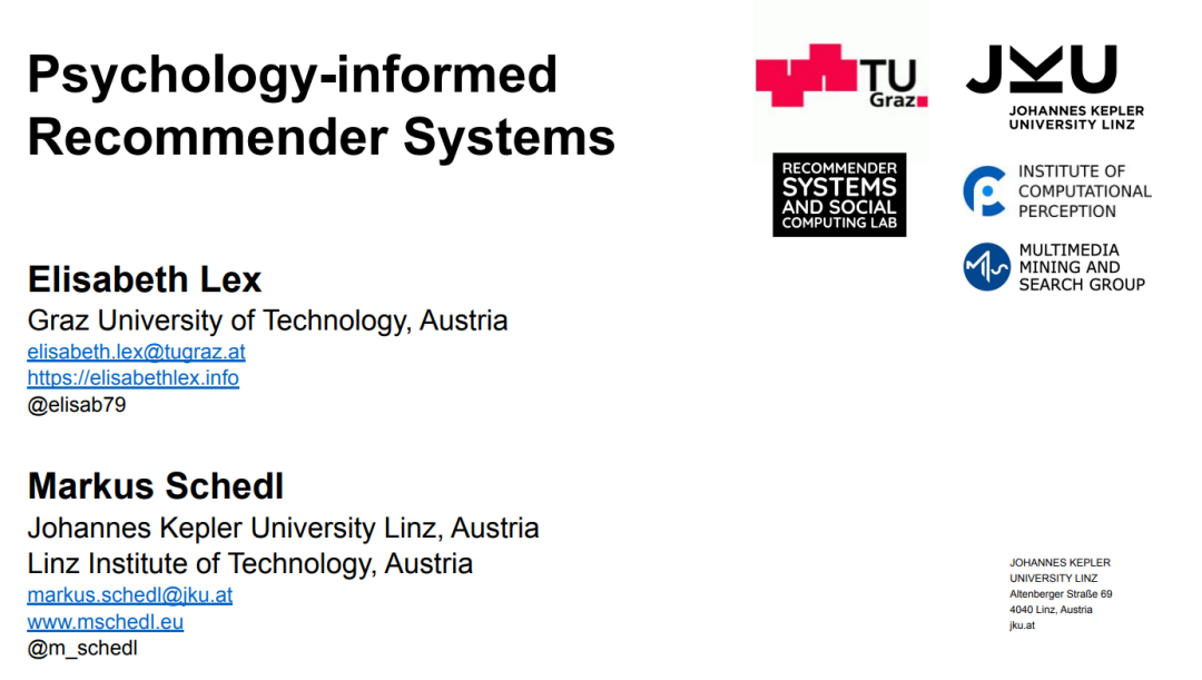 个性化推荐系统是促进人类决策的重要工具。大多数最先进的推荐系统使用先进的机器学习技术,从行为数据建模和预测用户偏好。虽然这样的系统可以提供有用的建议,但它们的算法设计没有纳入塑造用户偏好和行为的潜在心理机制。在这个跨学科的教程中,我们引导与会者通过最先进的心理学信息推荐系统(PIRS),即,考虑外在和内在的人为因素的推荐系统。我们涵盖了认知激励、个性感知和情感感知的推荐方法;我们展示了这样的系统如何以高度以人为本的方式改进推荐过程。