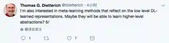 “我对元学习方法也很有兴趣,它反映出来的是深度学习所学到的低层表征。可能这里的方法将有可能学到更为高层的抽象。6/”