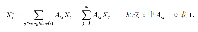 所以对于所有节点, 其平均法的更新过程为(写成矩阵运算):