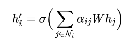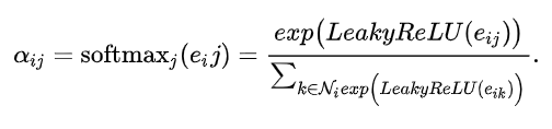 通过对 的邻居进行softmax, 就可以得到(学习出)节点间的关系系数: