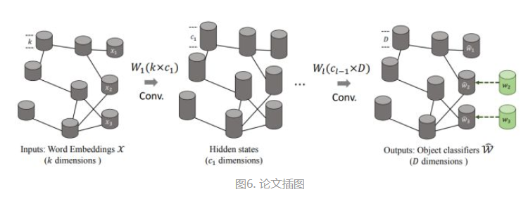 GCN的输入是每类的Word Embedding 向量, 最后一层的输出维度 和视觉向量的维度一致. 通过 均方误差(MSE) 来训练让节点最后的输出和对应的视觉向量相近.