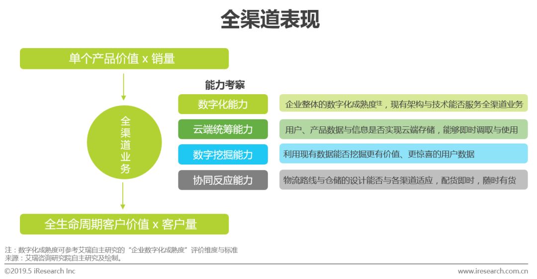 线上线下渠道在客群、场景、渠道三大方面互补,线下体验为线上拉新提供流量,线上购买、支付为线下场景提供便利。提升用户体验、深化品牌认知,企业将收获更多的潜在商业价值。同时,通过全渠道销售,促使企业完善升级自己的供应链系统、优化企业与供应商、分销商之间的协作能力、提升企业数据搜集、整合、分析能力、打造更专业的营销团队和更先进的互联网思维,从而增强企业自身的生态价值。