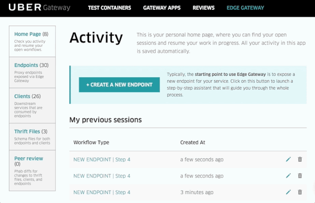 最初由我们的第二代网关系统服务的边缘层被一个单独的 Golang 服务和一个用户界面所取代。“边缘网关”是内部开发的 API 生命周期管理层。所有 Uber 工程师现在都可以访问其用户界面来配置、创建和修改面向产品的 API。用户界面既可以进行简单的配置(如身份验证),也可以进行高级配置(如请求转换和标头传播)。