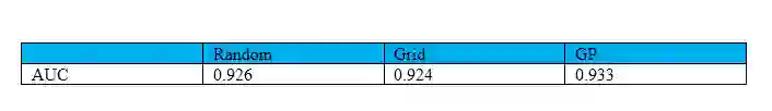 由于每次评估目标函数的计算成本可能较大,如果观察到候选超参数组合在开始的若干轮迭代中表现不佳,可以提前停止这些候选超参数组合。Angel 3.0 版本中实现了该策略。表 2 展示了在逻辑回归算法的实验,调节的超参数是学习速度和学习速度衰减率,结果显示贝叶斯优化的性能优于随机搜索和网格搜索,而随机搜索的结果略优于网格搜索。