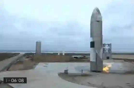 从 SpaceX 的直播视频中我们可以看到,飞船垂直飞到大约 10 公里(6.2 英里)的高度后关闭了全部三台猛禽(Raptor)发动机,开始了水平的下降,四个襟翼在计算机的控制下保持着飞船的姿态。在接近落地时,SN15 的两台发动机重新点火并执行复杂的「着陆翻转机动」。最后,星舰原形展开了「起落架」,降落在离发射台不远的混凝土地面上。