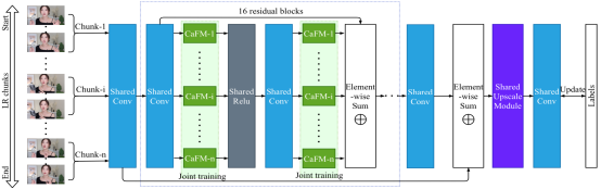 正如上文中所介绍的,该研究可以利用 CaFM 去替换每个视频段的 SR 模型。但是通过在一个 SR 模型上微调n 个 CaFM 模块的方式很难将精度提升到直接训练 n 个 SR 模型的 PSNR。因此该研究提出了一种联合训练的框架,该框架可以同时训练 n 个视频段。公式可以表示为: