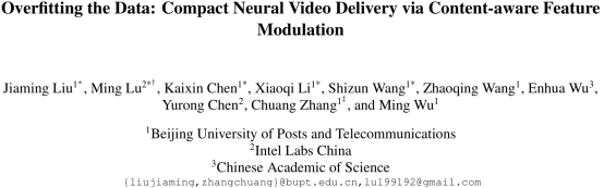 尽管将 DNN 应用于视频传输很有前景,但现有方法仍然存在一些局限性。一个主要的限制是它们需要为每个视频段训练一个 DNN,从而导致一个长视频有大量单独的模型。这为实际的视频传输系统带来了额外的存储和带宽成本。在本文中,研究者首先仔细研究了不同视频段的模型之间的关系。尽管这些模型在不同的视频段上实现了过拟合,但该研究观察到它们的特征图之间存在线性关系,并且可以通过内容感知特征调制(CaFM)模块进行建模。这促使研究者设计了一种方法,使得模型可以共享大部分参数并仅为每个视频段保留私有的 CaFM 层。然而,与单独训练的模型相比,直接微调私有参数无法获得有竞争力的性能。因此,研究者进一步设计了一个巧妙的联合训练框架,该框架同时训练所有视频段的共享参数和私有参数。通过这种方式,与单独训练的多个模型相比,该方法可以获得相对更好的性能。