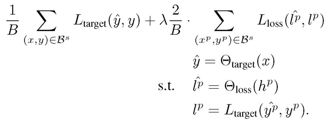 给定小批量 B,同时学习目标模块和损失预测模块的损失函数为: