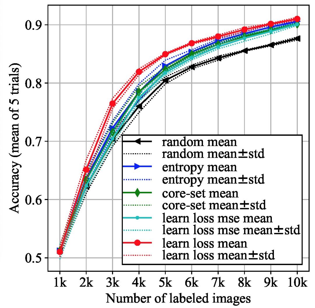 来自韩国 KAIST 的两位学者提出了一种新的主动学习方法:学习损失函数的主动学习模型(Learning Loss for Active Learning)。本文的思路主要来源于深度学习,即不管任务是什么、任务量有多大以及任务的体系结构有多么复杂,学习目的就是最小化损失函数而与具体任务无关。本文提出的主动学习方法引入一个「损失预测模块」,通过学习损失预测模块来估计未标注数据的损失值。无论目标任务是什么,模型都执行同样的损失函数优化,因此损失预测模块是任务不可知的,该方法可以应用于任何使用深度网络的机器学习。
