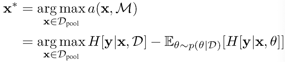 与 GAAL 不同,本文方法首先利用基于池的方法(BALD)选择出信息量最大的样本,具体公式为:
