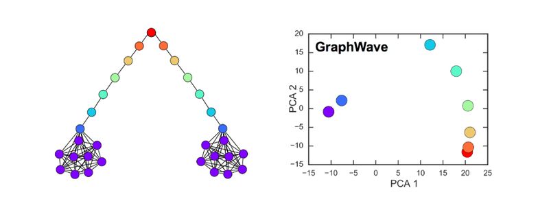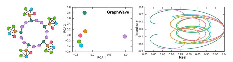 GraphWave 是一种可扩展的无监督方法,用于基于网络中的结构相似性来学习节点嵌入。 GraphWave 通过将小波视为概率分布,并使用经验特征函数表征分布来开发光谱图小波的新用途。
