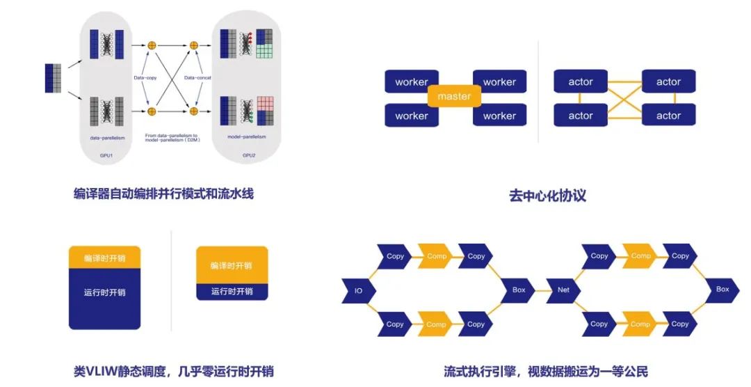 对于 支撑 OneFlow 高效性背后的 关键技术,袁进辉总结为几点:
