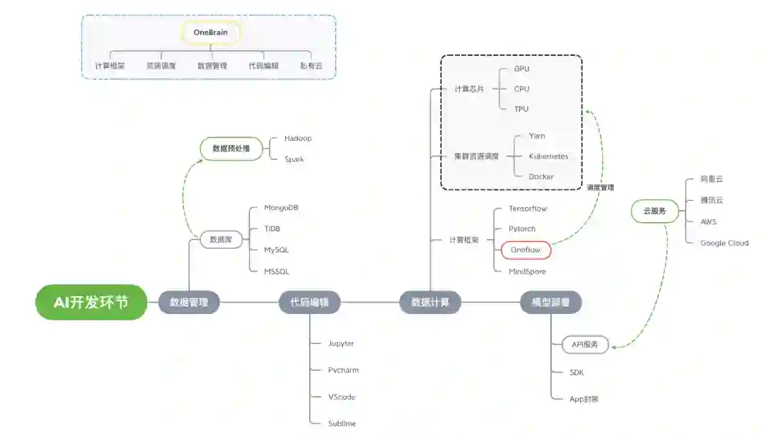 在服务更多客户的过程中又发现,有些用户不仅需要深度学习平台,还需要大数据平台,于是顺势集成了大数据平台;还有客户需要数据标注平台,就进一步丰富了数据标注功能。经过多轮迭代,除了具有完全自研的深度学习框架,OneBrain 机器学习平台的功能也越来越完备。