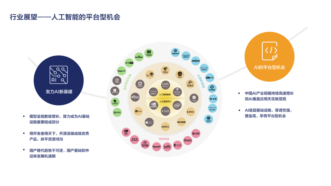 唯有深度学习框架有可能形成用户生态,框架汇聚了数据、算法和硬件的核心技术,整个行业的发展成果及用户生态全部都沉淀到深度学习框架上。无论是哪个国家或哪个企业,想要在人工智能生态中占据战略要地,都必须从深度学习框架入手。因此,深度学习框架是不可替代的,其占据着人工智能浪潮“三驾马车”中最为中心和重要的战略地位。