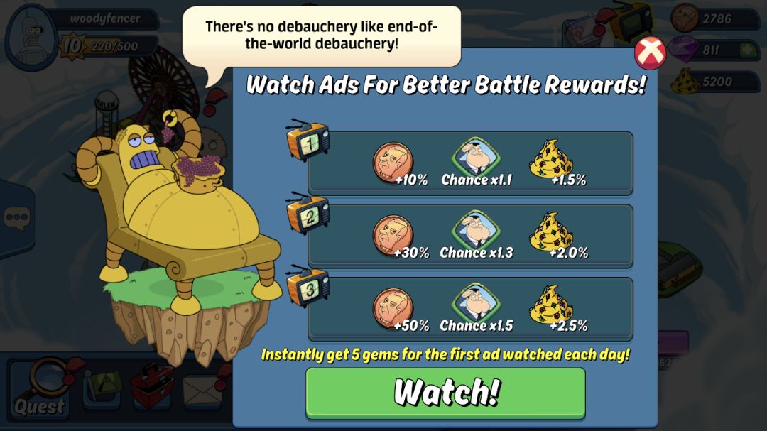 提供有意义的奖励,且奖励会随着玩家等级而提升: 比如按照百分比提供战利品回报,这样无论玩家的等级高低,广告提供的战利品提升总是有意义的。