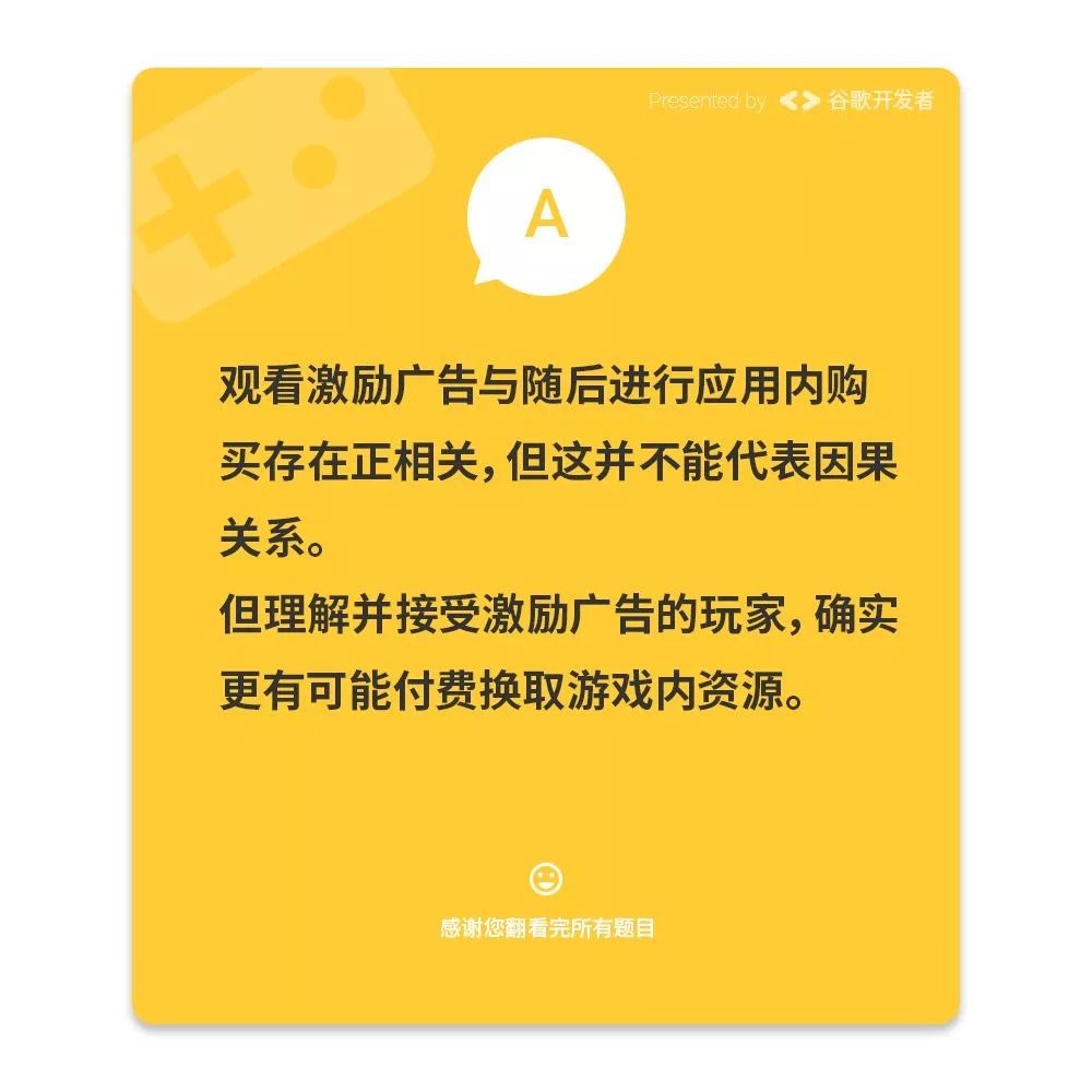 Kongregate 发现,在他们旗下的 6 款游戏中,在第一次游戏过程中观看广告的人,随后进行应用内购买的可能性是对照组的 2.5 到 5 倍。这并不是说观看广告会导致*人们决定应用内购,而是说,那些理解并接受激励广告价值主张的玩家——他们愿意用自己的时间交换游戏内的货币或资源——更有可能付费换取游戏内资源。
