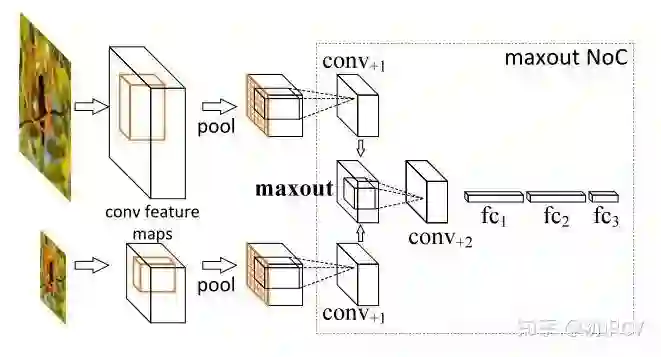 multi-scale training/testing最早见于[1],训练时,预先定义几个固定的尺度,每个epoch随机选择一个尺度进行训练。测试时,生成几个不同尺度的feature map,对每个Region Proposal,在不同的feature map上也有不同的尺度,我们选择最接近某一固定尺寸(即检测头部的输入尺寸)的Region Proposal作为后续的输入。在[2]中,选择单一尺度的方式被Maxout(element-wise max,逐元素取最大)取代:随机选两个相邻尺度,经过Pooling后使用Maxout进行合并,如下图所示。