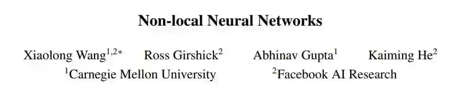 这是一篇 CMU 与 FAIR 合作的论文,第一作者是 CMU 的 Xiaolong Wang,其他两位作者是 Ross Girshick(DenseNet 作者之一)和 Abhinav Gupta(CMU 教授,他今年 CVPR + ICCV 一共发表了 15 篇论文)。
