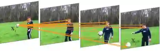 摘要 卷积和递归运算都是一次处理一个局部邻域的基本计算组件(building block)。在本文中,我们将非局部运算(non-local operation)作为获取长时记忆(long-range dependency)的一类通用组件。受计算机视觉中的经典非局部均值方法的启发,我们的非局部运算将一处位置的响应计算为所有位置的特征的加权和。这个组件可以插入到许多计算机视觉结构中。在视频分类任务上,即使没有任何花里胡哨的处理,我们的非局部模型也能在 Kinetics 和 Charades 数据集上获得与一些当前视觉竞赛的冠军模型相当乃至更好的效果。在静态图像识别中,我们的非局部模型提高了 COCO 物体检测/分割和人体姿态估计这些任务的性能。代码今后公开。 作者训练好用于视频分类的一个网络,在时空上进行非局部运算的示例。计算时,位置 Xi 的响应等于时空中所有位置的特征的加权和。注意第一帧里球的位置与后两帧球的关联。来源:论文(下同) 论文中给出的深度神经网络非局部计算公式,其中 i 是(空间、时间或时空上的)输出位置的序号,计算的就是位置 i 的响应,j 是所有可能位置的序号。x 是输入信号(一般是特征,可以是图像数据、序列数据或视频数据),y 是与 x 相同大小的输出信号。函数 f 计算 i 和所有 j 之间的标量(代表两者间的关系)。一元函数 g 计算位置 j 处的输入信号的表征。最终响应通过因子C(x)归一化。 |