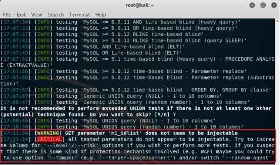 2.3 等待了一段漫长的时光,sqlmap的扫描结果如下图所示(居然告诉我没有漏洞,唉,看来神器也有靠不住的时候):