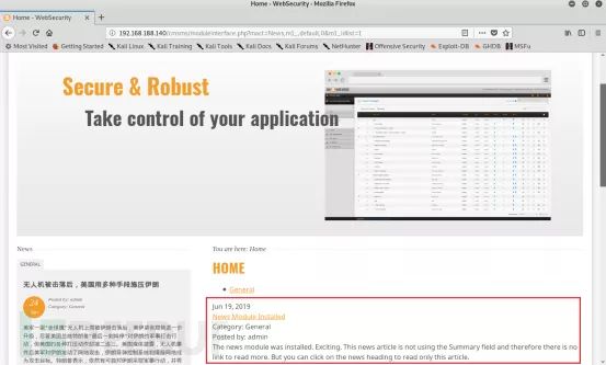 1. 漏洞URL如下:“http://server-ip/cmsms/moduleinterface.php?mact=News,m1_,default,0&m1_idlist=”