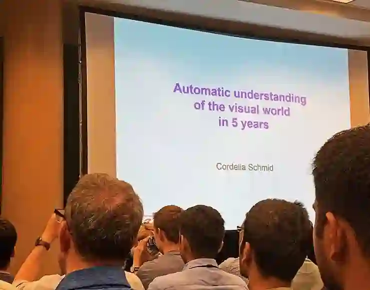 首位演讲者是 INRIA 法国国家信息于自动化所的研究主任 Cordelia Schmid。