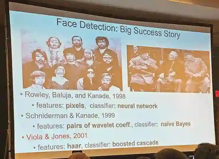 他举了例子说明,如今面部识别早已不是问题,但当时,1998 年、1999 年都有人已经用简单的方法做出了优秀的结果,但让领域内公认「解决」了面部识别问题的算法,是看起来足够难的那个算法—— 2011 年的 Haar 特征加级联提升多厉害,更早的用像素特征、用朴素贝叶斯听起来就没难度,朴素贝叶斯(Naive Bayesian)这么天真、简单,怎么能说是突破性结果的代表呢。