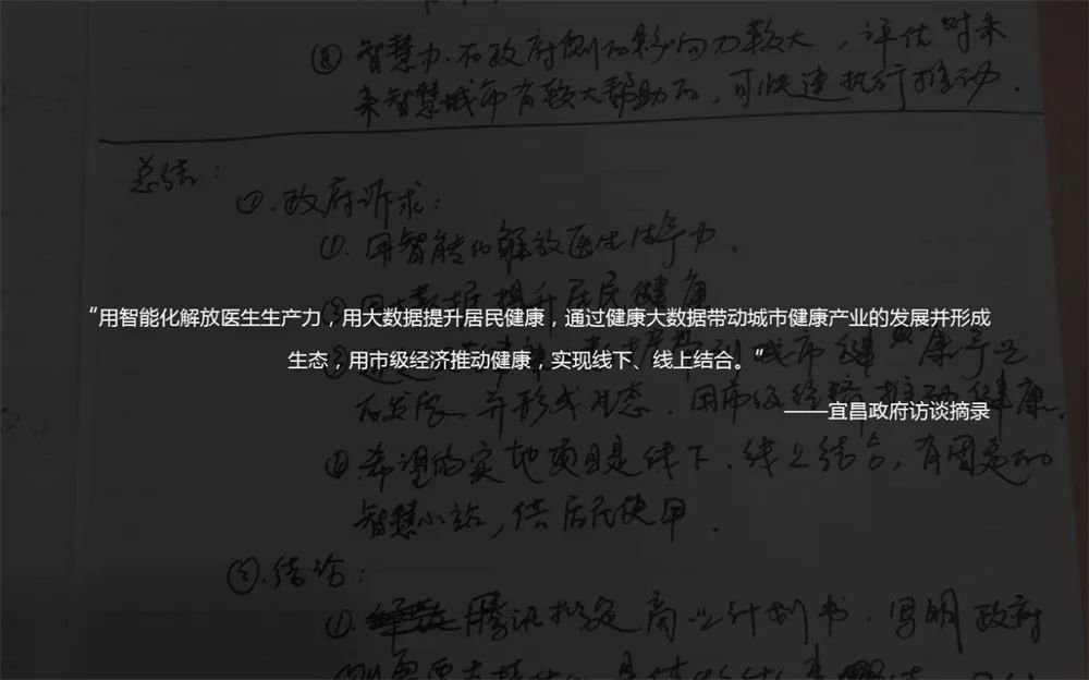 最后,我们想用兄弟部门在宜昌对政府进行访谈时,记录的一句话作为结尾,这句话虽然说的是医疗大数据,但是我们觉得很有启发性,逻辑是相通的: