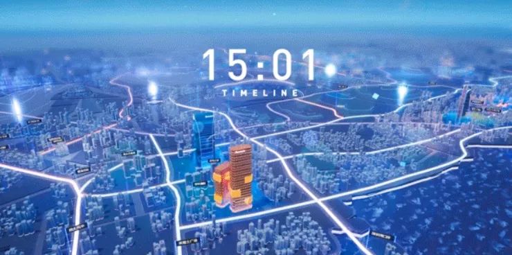 时间线:3D的维度基础上,我们增加了时间的维度,通过拖动时间线查看不同时间点的数据的变化趋势,由此对未来数据进行预测。为了强化用户对于时间感知,设计了白天和晚上两种风格,白天和夜晚随着时间变化而变化。