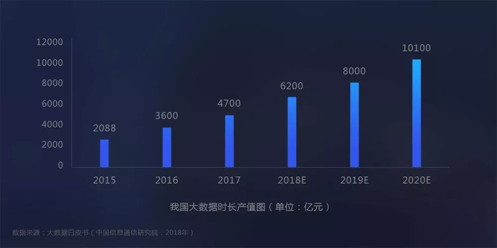 数据显示,2017年中国大数据产业规模为4700亿元。随着一系列政策的出台,大数据国家战略正在加速落地,大数据行业将持续增长,预计2018年中国大数据产业规模将达到6200亿元,增幅达32%。需求层面,预计2020年大数据应用市场需求中,仅政府需求就占比35%,另外包括医疗、交通、金融等多个行业在大数据和信息化建设投入也将持续增加。